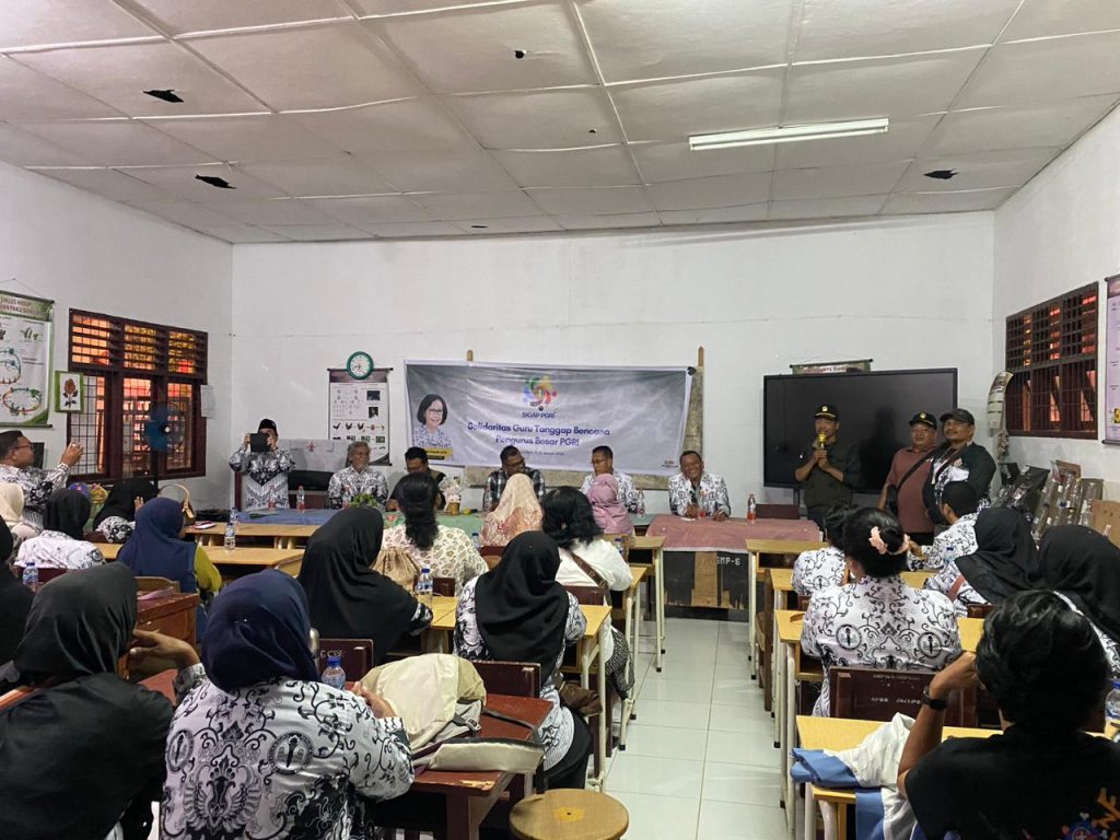 Suasana haru terasa ketika rombongan Pengurus Besar PGRI tiba di lokasi terdampak bencana. Di tengah keterbatasan dan kelelahan yang dirasakan para guru serta warga, kehadiran organisasi profesi guru ini membawa harapan dan penguatan moril.